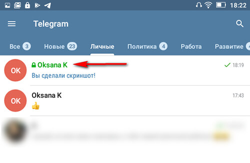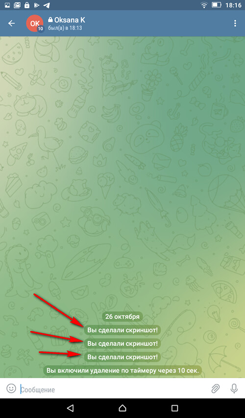 P.S. Обратите внимание, как только сделан скриншот, в окне диалога появляется уведомление об этом. Такое же уведомление появится, если скрин сделает собеседник.