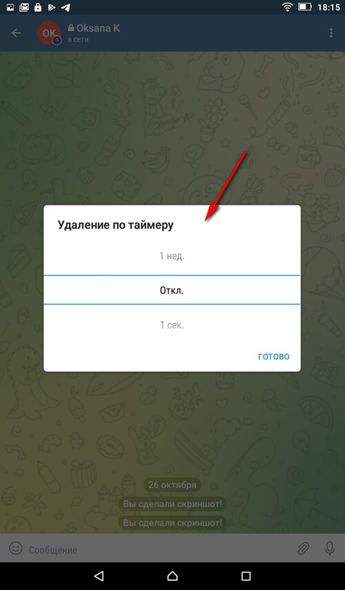 Важное по таймеру: таймер работает и с сообщениями, и с файлами. Он начинает работать с момента установки на все последующие сообщения. На отправленные сообщения до установки таймера он не влияет (то есть, их придется удалять вручную). Функция автоуничтожения также доступна в обычных переписках в Телеграм.