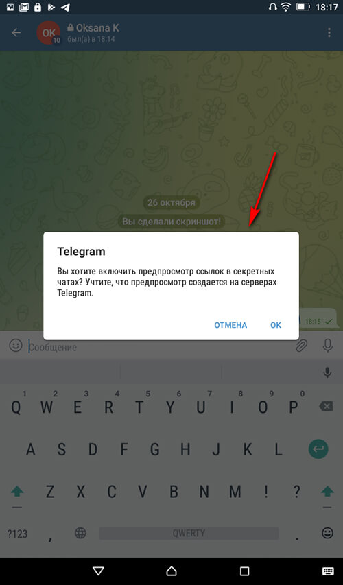 Важный момент — если вы отправляете ссылки, то при включении их предпросмотра, они сохраняются на сервере. То есть, это уже не так конфиденциально, как без предпросмотра. Соответствующее предупреждение показывается при попытке отправить ссылку в чат. Можно согласиться на предпросмотр ссылок или отменить его, тогда ссылки будут некликабельными.