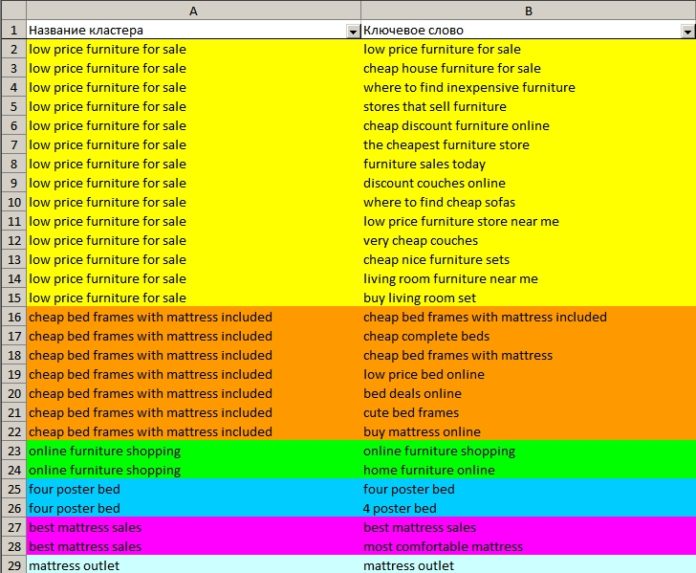 Мы собрали опорный список ключевых фраз, расширили и углубили его. Теперь все полученные запросы нужно кластеризовать — разбить по группам.