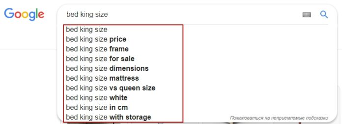Фактически, поисковик предлагает различные варианты «хвостов» для основного запроса. Эти запросы — низкочастотные, более точные и узконаправленные. Поэтому стоит их использовать в семантическом ядре.