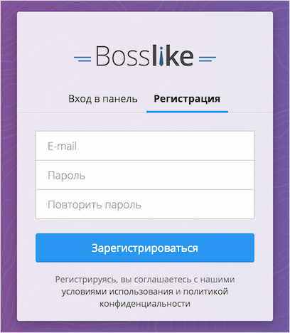Регистрация на Босслайке очень простая. Заходим на сайт Bosslike.ru. В правом верхнем углу сайта нажимаем “Вход”.
