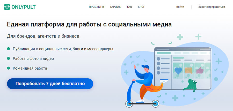 Onlypult — платформа для работы с медиа (соцсетями, блогами и мессенджерами). Можно работать более чем, с 14 медиа из одного окна без необходимости перелогиниваться. Автопостинг — одна из функций сервиса.
