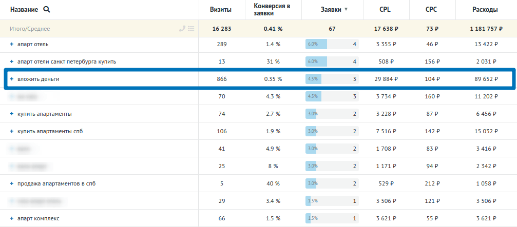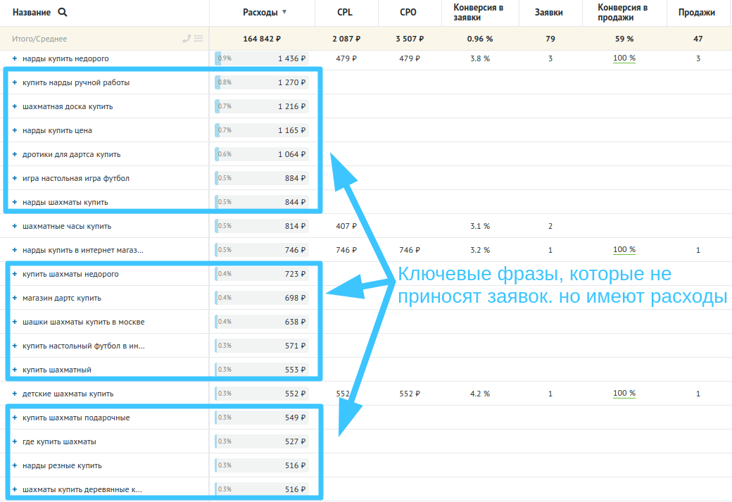 Кроме того, был урезан бюджет на ключи, по которым клики не конвертируются в заявки.