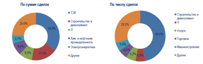 Удельный вес отраслей на российском рынке M&A в 2020 г.: