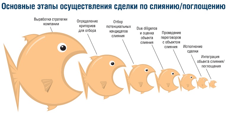 Процесс слияния и поглощения в западной литературе имеет аббревиатуру M&A (Merges and Acquisitions).