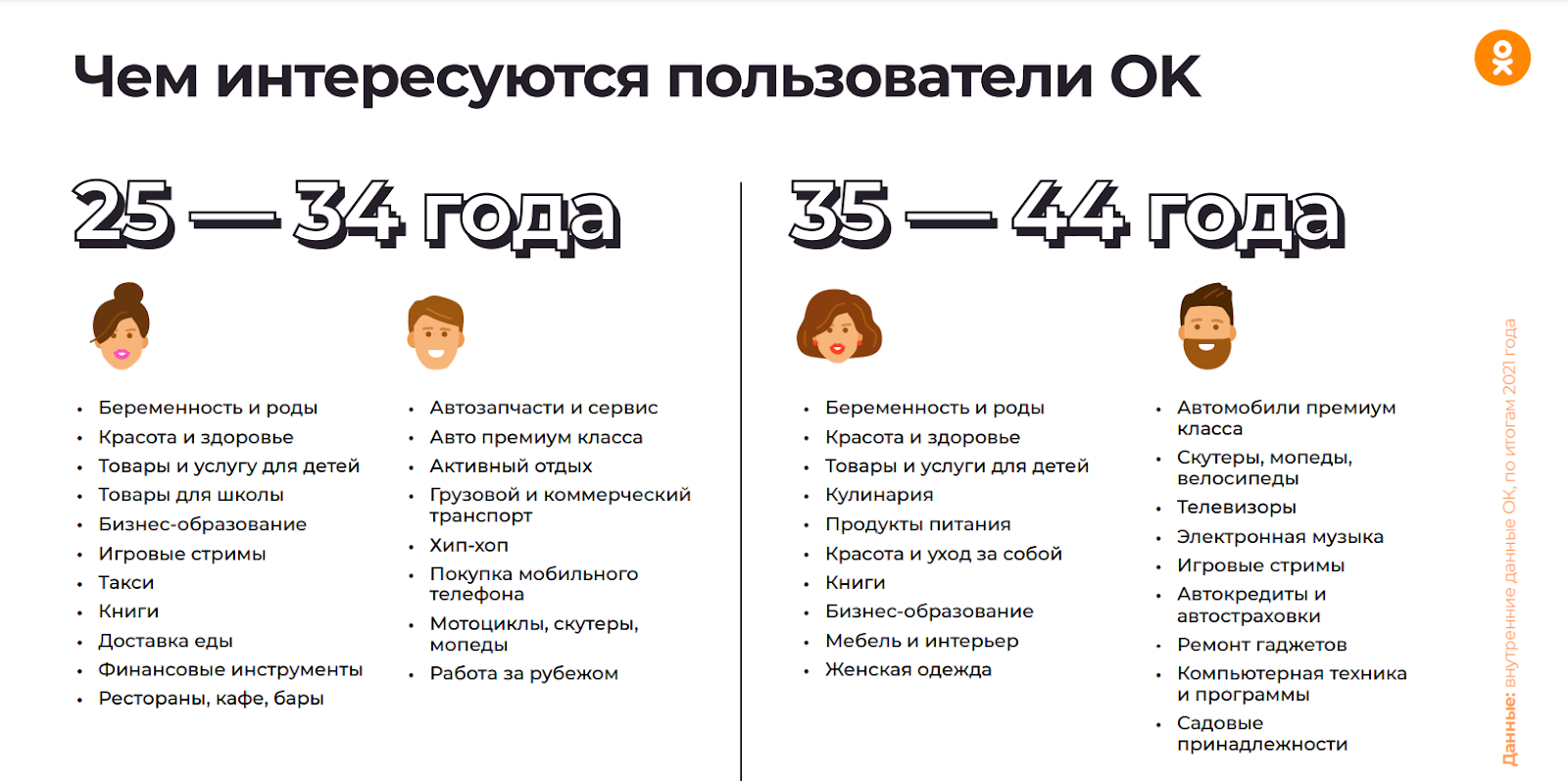 Интересы взрослой платежеспособной аудитории Одноклассников
