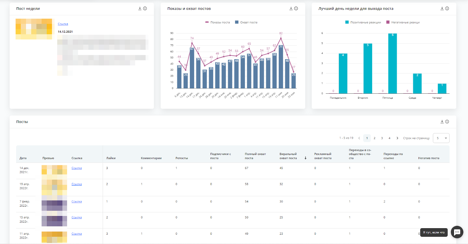По количеству подписчиков за год, с мая 2021 по май 2022, группа выросла на 800 человек – 6329 фолловеров. Вовлеченность тоже увеличилась: ER reach – до 3,21 %, ER view – до 3,13 % на май 2022 года.