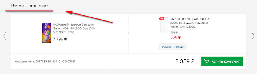 Даже если не предлагать дополнительный товар со скидкой, то нужно хотя бы сделать раздел «Вместе с этим товаром покупают». Так покупатель, покупая телефон, может вспомнить, что к нему надо бы сразу купить чехол и защитную пленку.