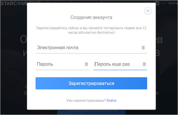 Для начала работы перейдите на сайт Starcomment и зарегистрируйтесь.