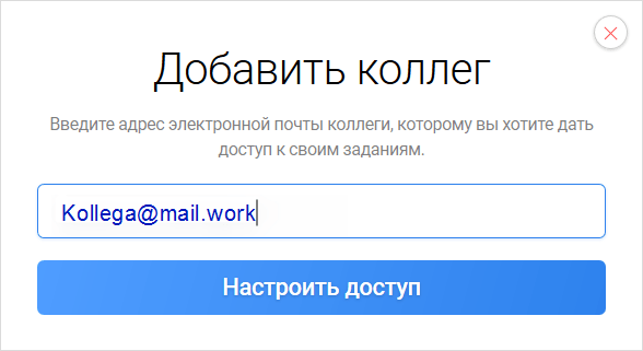 Всегда можно выдать или ограничить доступ к заданиям для своих коллег. Для этого перейдите к настройкам, затем введите электронный адрес человека для настройки доступа.