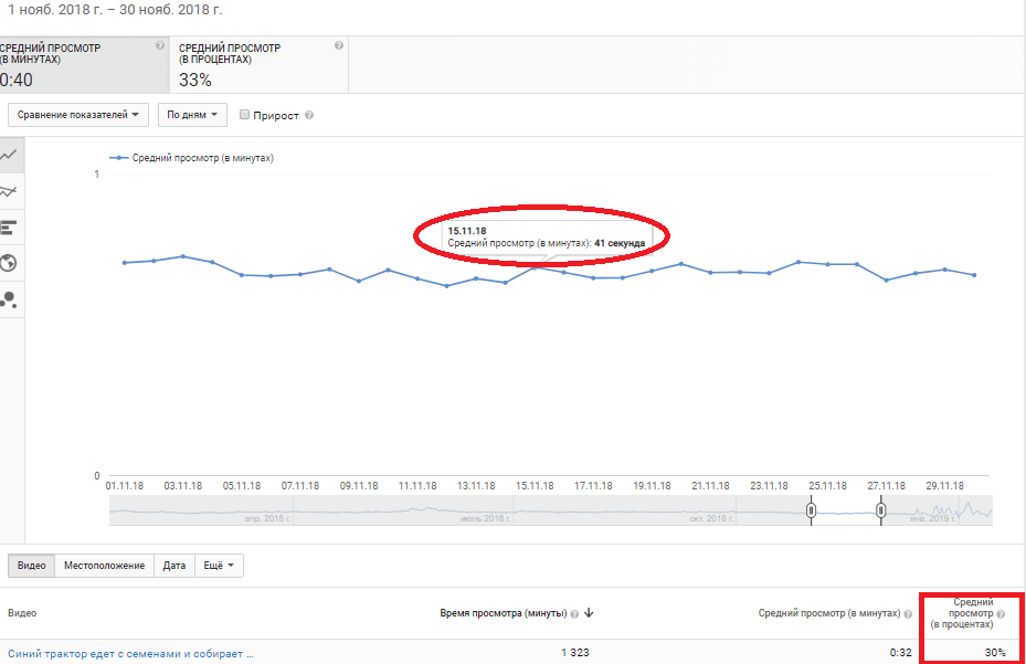 Это важная графа, где вы сможете посмотреть, до какой минуты досматривают ваши ролики, а где их начинают перематывать.