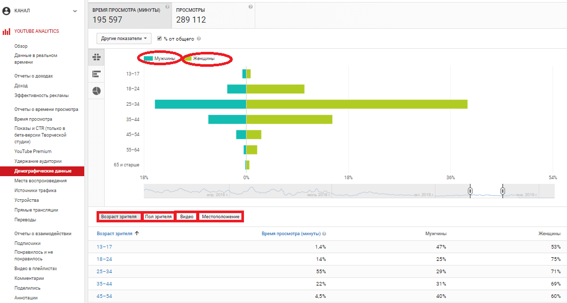 Вы можете из этого отчёта узнать пол и возраст людей, которые смотрят ваши ролики, а также страну их проживания.