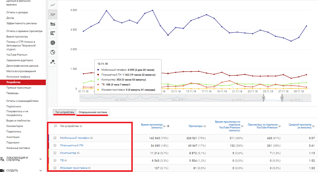 За счёт этого отчёта вы сможете улучшить видео для зрителей. Если больше смотрят с телефонов, то не стоит использовать мелких картинок и значков, которые будут незаметны.