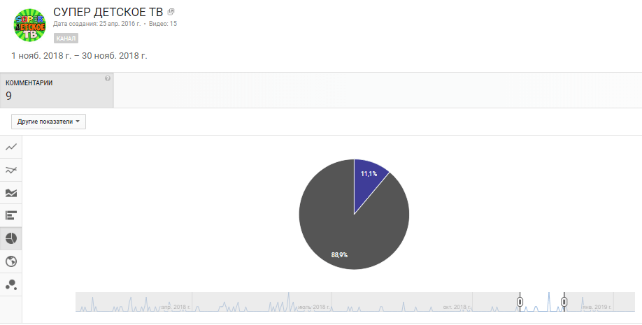 Тут вы можете отследить, сколько комментариев за указанный период было оставлено на ваших роликах, каждый цвет диаграммы–это отдельный видеоролик.