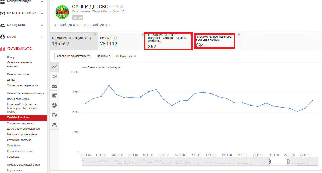 YouTube Premium — это платная подписка, которая позволяет просматривать ролики без рекламы. То есть, даже если на вашем канале включена монетизация, вы не будете получать доход с таких просмотров. В этой вкладке вы видите полную аналитику просмотров и отдельно по подписке.