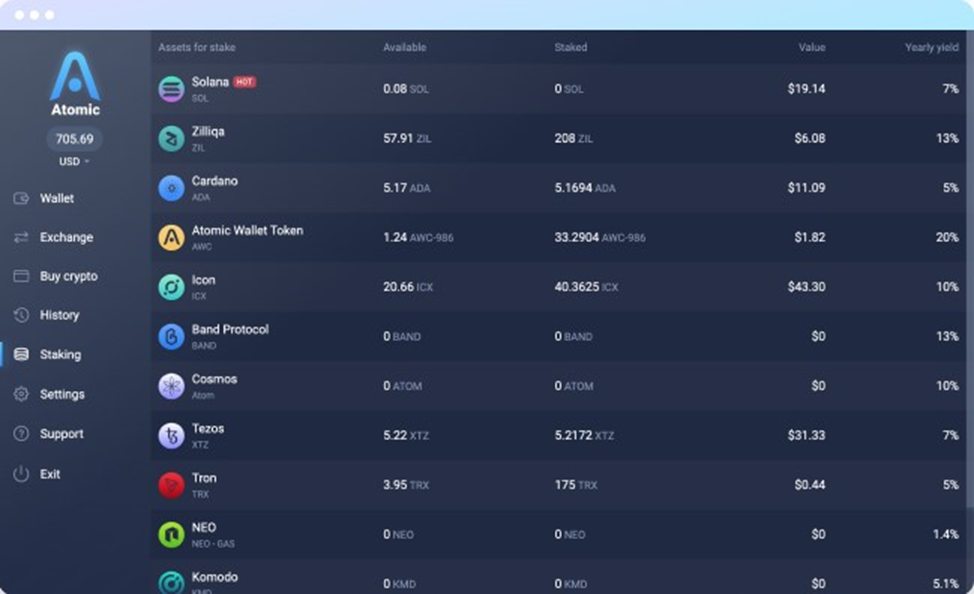 Для подключения к стейкингу нужно купить или создать криптокошелек, приобрести крипту, выбрать опцию стейкинга в функционале и заблокировать определенное количество средств, указав срок замораживания. Вот в каких кошельках доступна эта опция: