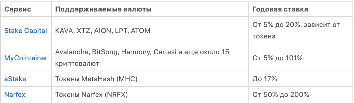 Для биржевого стейкинга рекомендуем использовать следующие пллощадки:
