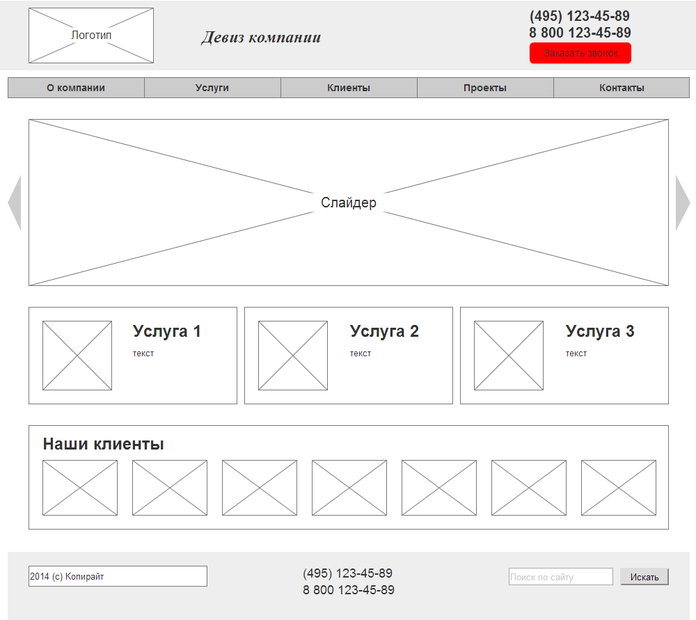 Пример прототипа главной страницы сайта: все просто, удобно, понятно