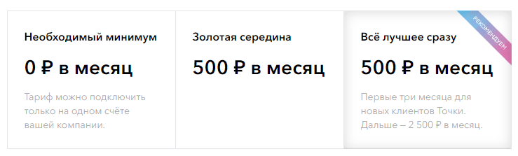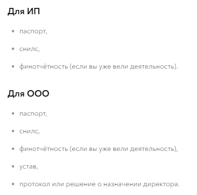 Перечень дополнительных услуг большой. Это кредиты, онлайн-кассы, бухгалтерия, депозиты, валютный контроль, эквайринг, зарплатный проект и др. Для всех тарифов “Точка” предлагает бесплатную регистрацию бизнеса, ИП или ООО, онлайн. Не надо идти в налоговую инспекцию, всю работу банк берет на себя.