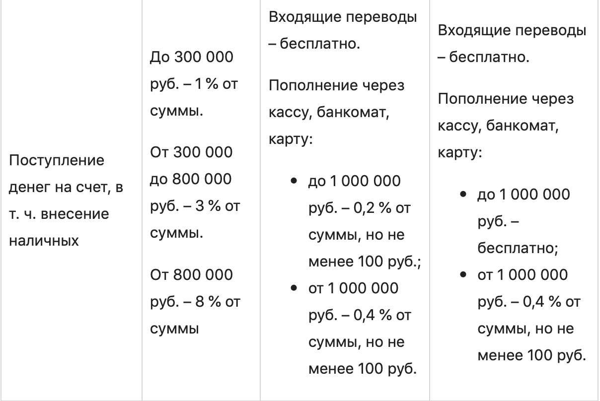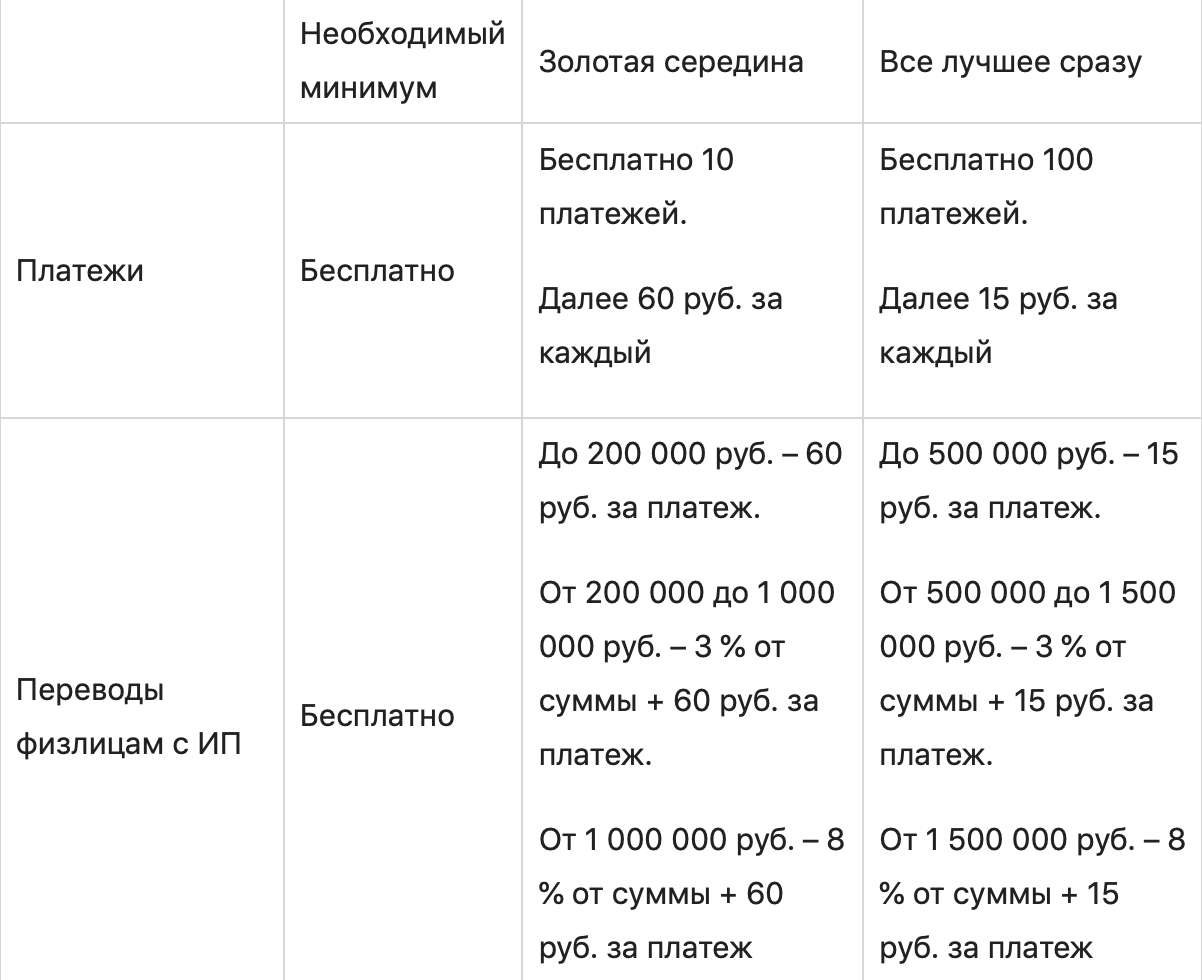 Для предпринимателей интернет-банк, мобильное приложение, обслуживание бизнес-карт, переводы налогов и платежей в бюджет – без комиссии. По 2-му и 3-му тарифам обслуживание бесплатное, если не было операций по счету.