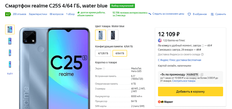 У realme C25s лучше процессор, чем у realme C21Y, а также больше объем аккумулятора — 6 000 мАч. Здесь тоже тройная камера, но разрешение основной выше чем у realme C21Y — 48 МП против 13 МП. realme C25s может снимать видео с максимальной скоростью съемки 60 кадров в секудну (C21Y снимает 30). Также у realme C25s более яркий экран. Если есть лишних 3 000 рублей (+ -) можно выбрать эту модель за характеристики камеры и процессора.