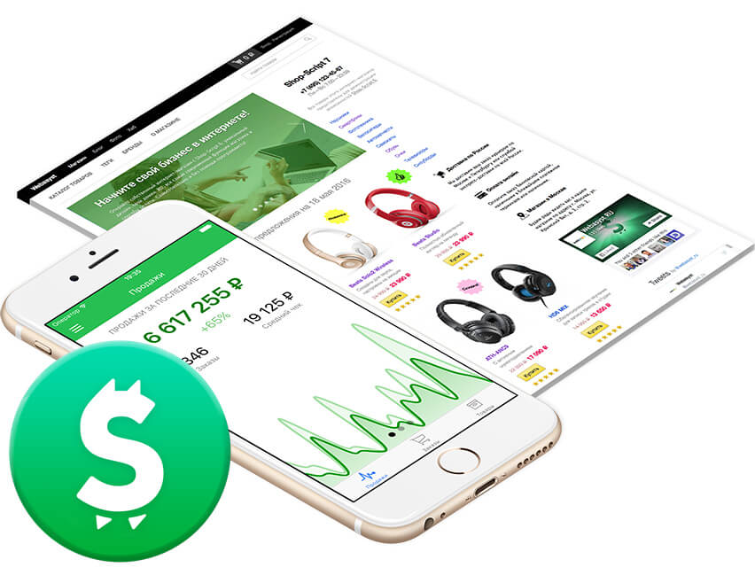 Из плюсов движка — интеграция с Яндекс.Маркетом, «1С:Предприятие», «Мой Склад». Есть бесплатное мобильное приложение для владельцев интернет-магазинов, которое поможет управлять заказами прямо со смартфона.