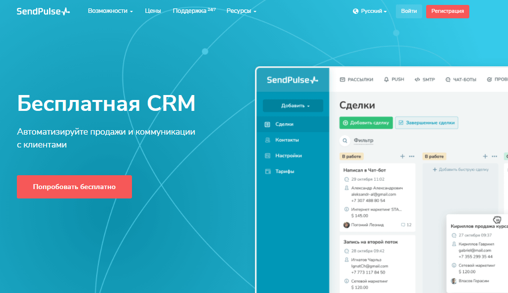 SendPulse CRM (sendpulse.com/ru/)