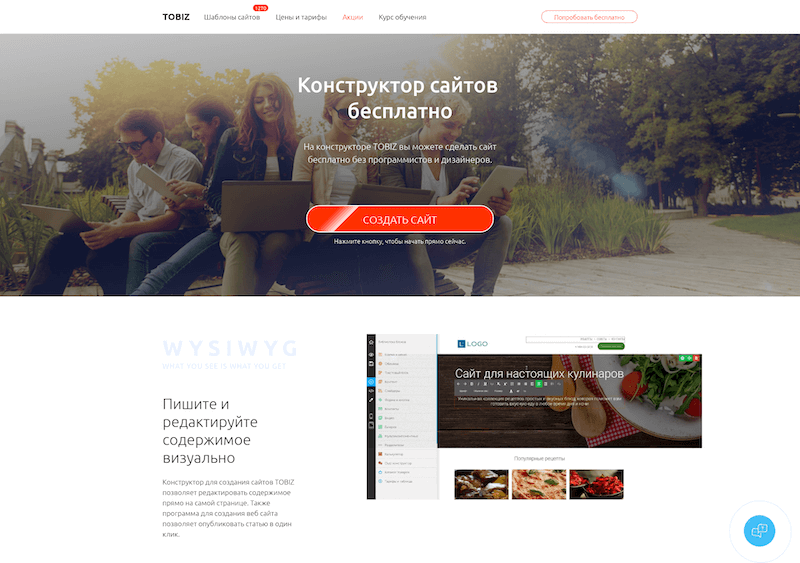 TOBIZ.NET — это отечественный сервис создания сайтов. Причем на платформе вы можете сделать как лендинг, так и сайт-визитку, интернет-магазин, блог или информационный многостраничник. Сервис удобный и простой. Так что даже «чайнику» все будет понятно с первого клика.