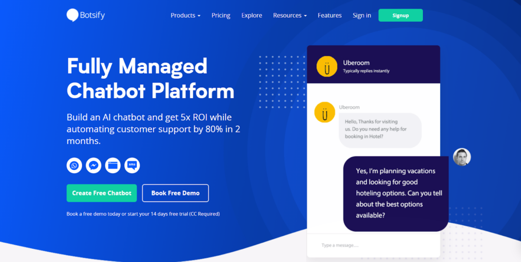 Платформы: сайт, WhatsApp, Facebook Messenger, SMS. Через Zapier возможна интеграция с другими платформами.