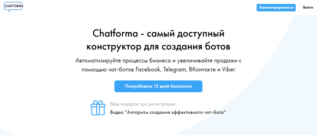 Chatforma – платформа для создания чат-ботов, которые помогают автоматизировать процессы и увеличивать продажи. Помимо непосредственно конструктора здесь есть другие полезные инструменты: мини-лендинги, витрины в мессенджерах, рассылки и авторассылки. Кроме того, сервис поддерживает интеграции для обмена данными с 2000 сервисов: Google Таблицы, МойСклад, Gmail, Slack и т. д.