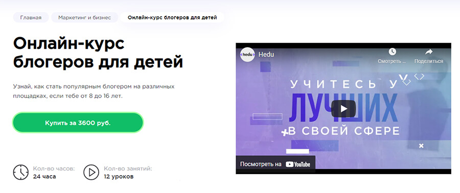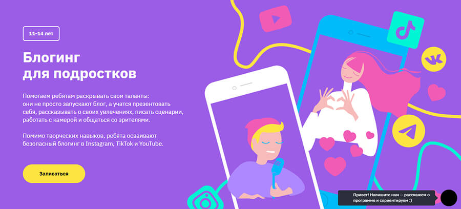 Курс от онлайн-школы Hedu для детей и подростков. Старт в сфере блогерства может пригодиться в будущем, если ребенок захочет выбрать творческую профессию — стать актером, ведущим, специалистом по рекламе и PR, отвечать за видеомаркетинг в компании. Либо выберет путь блогера в качестве основного.