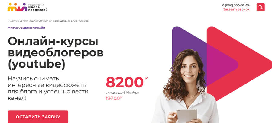 6. Онлайн-курсы видеоблогеров от Международной школы профессий