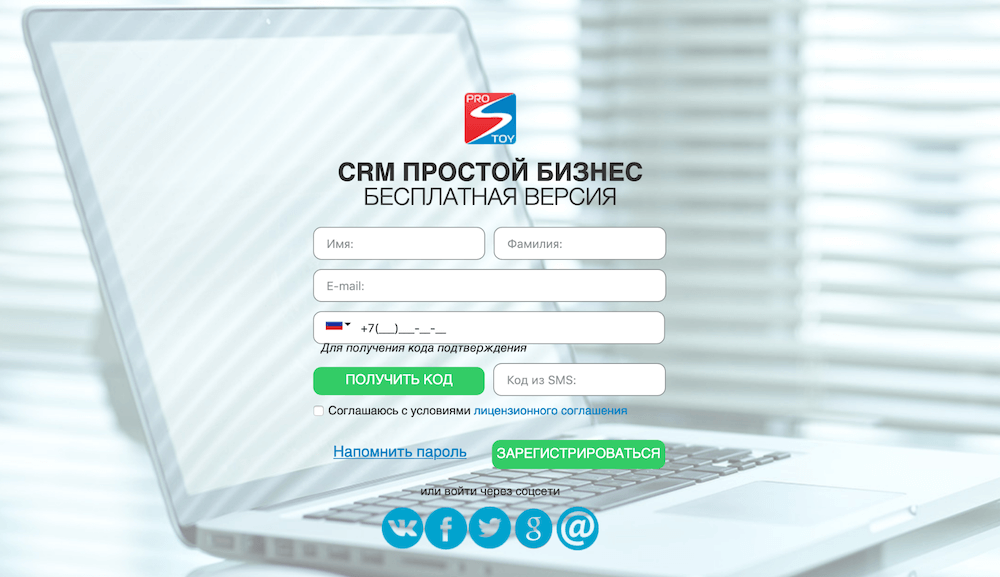 Этап №1: Регистрация. Перейдите на сайт https://www.prostoy.ru/ и нажмите на кнопку «Регистрация». Заполните обязательные поля: имя, фамилию, электронный адрес, номер телефона в международном формате с кодом и плюсом вначале и нажмите на кнопку «Получить код». На указанный номер поступит SMS-сообщение с кодом. Введите его в поле «Код из SMS». Также Вы можете зайти в программу, используя Ваш аккаунт Вконтакте, Фэйсбук или X (Твиттер).