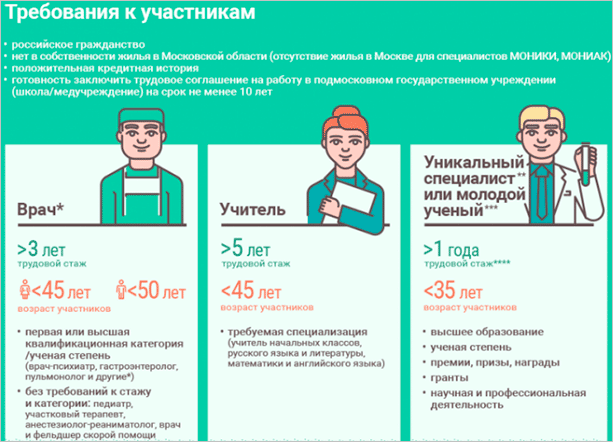 - Программа предусматривает выдачу кредитов на покупку квартир для людей, кто имеет востребованные в московском регионе профессии: учителя, врачи, ученые.