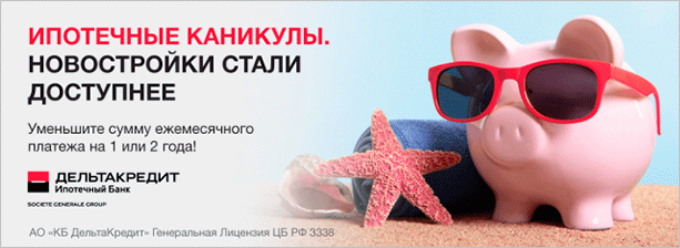 Банк предоставляет услугу “Ипотечные каникулы”. В первые 1 – 2 года вы можете выплачивать только 50 % от ежемесячного взноса.