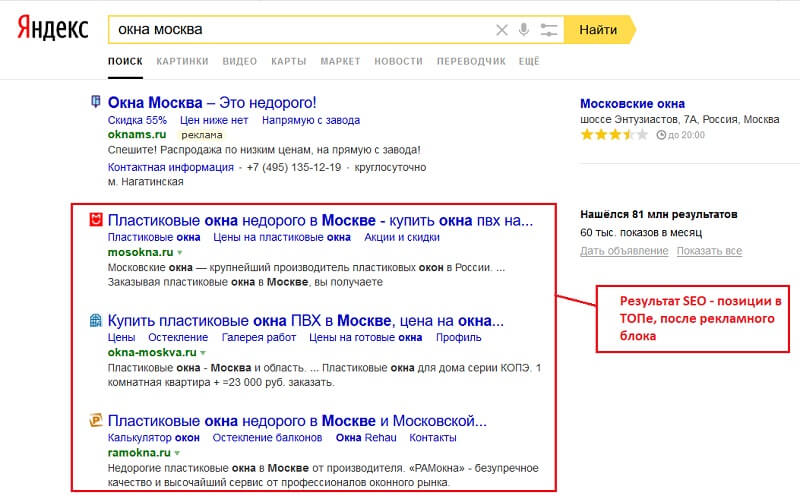 Поисковую оптимизацию сложно отнести к рекламе в чистом виде. Она не отправляет аудитории яркий месседж и не вступает в обратную связь. Однако ее влияние на раскрутку проекта неоценимо.