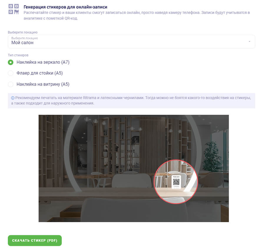 - распечатайте QR-код с ссылкой на запись — клиентам достаточно навести камеру смартфона на код, чтобы записаться.