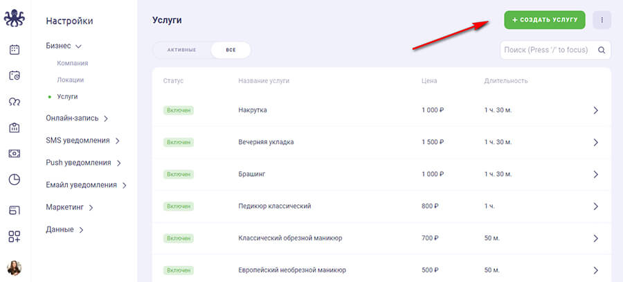 Нажимаем «Создать услугу».