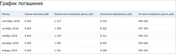 В сентябре платеж по % составит 8 333 руб. Государство возвращает 13 % с этой суммы. Таким образом, ваша “чистая” зарплата в сентябре составит 27 183,29 руб.