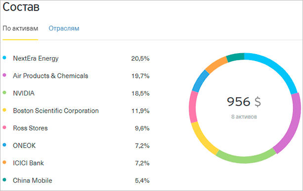 А на 956 долларов США рекомендуемый портфель выглядит следующим образом.