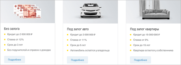 Банк предлагает 3 вида кредита: