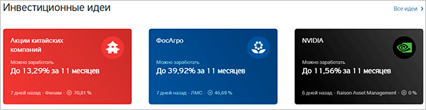 Если у вас есть опыт в торговле ценными бумагами, то вы можете через Тинькофф Брокера самостоятельно строить свой инвестиционный портфель. Для новичков в трейдинге банк предлагает воспользоваться готовыми инвестиционными идеями от экспертов или услугами робота-советника.