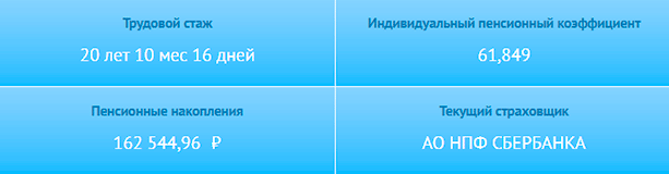 Накопленный коэффициент можно посмотреть на сайте Пенсионного фонда. Для этого надо создать личный кабинет. Можно воспользоваться логином и паролем от сайта Госуслуги. Вот так выглядит эта информация.