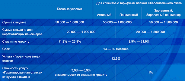 Если ставка по кредиту высокая, то можно подключить услугу “Гарантированная ставка”. Вы погашаете долг без задержек, в конце срока банк пересчитает кредит под 12,9 % и вернет разницу. Услуга не бесплатная: 3,9 – 6,9 % от суммы к выдаче.