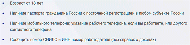 Посмотрите на требования к заемщику.