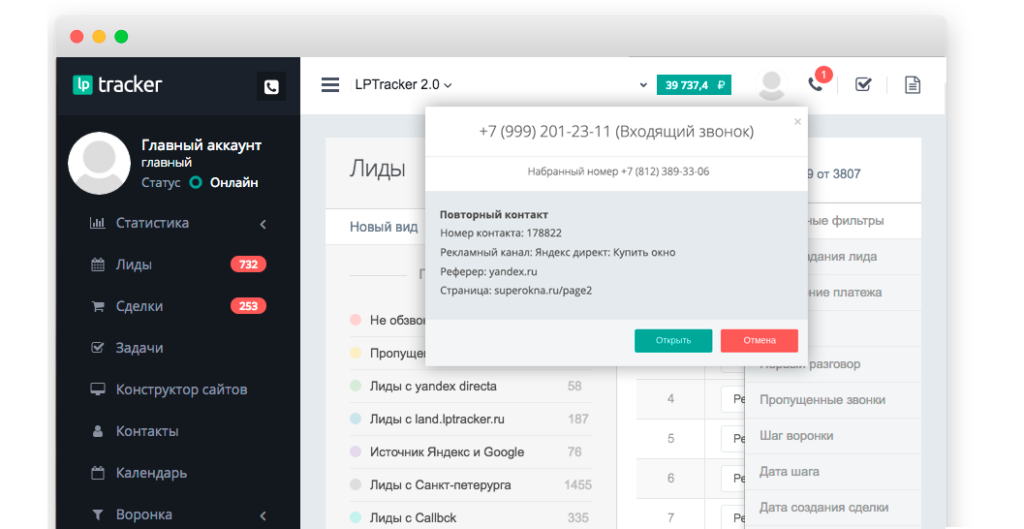 - Фильтрация по регионам, источникам, сотрудникам и др. Сегментация лидов.
