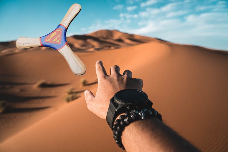 Напомним, что бумеранг – это метательный предмет, который возвращается к месту запуска. В древности он служил боевым и охотничьим оружием у австралийских аборигенов. При грамотном обращении бумеранг приземляется точно в руки, но если его запустить неправильно, он может убить самого охотника.