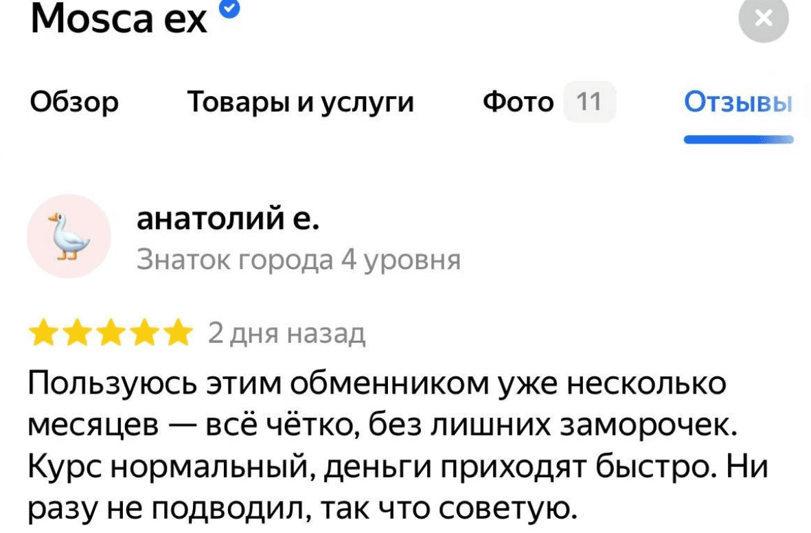 Широкий спектр предоставляемых услуг, выгодные курсы обмена, забота о безопасности собственных клиента – все это ставит Mosca выше аналогичных платформ.