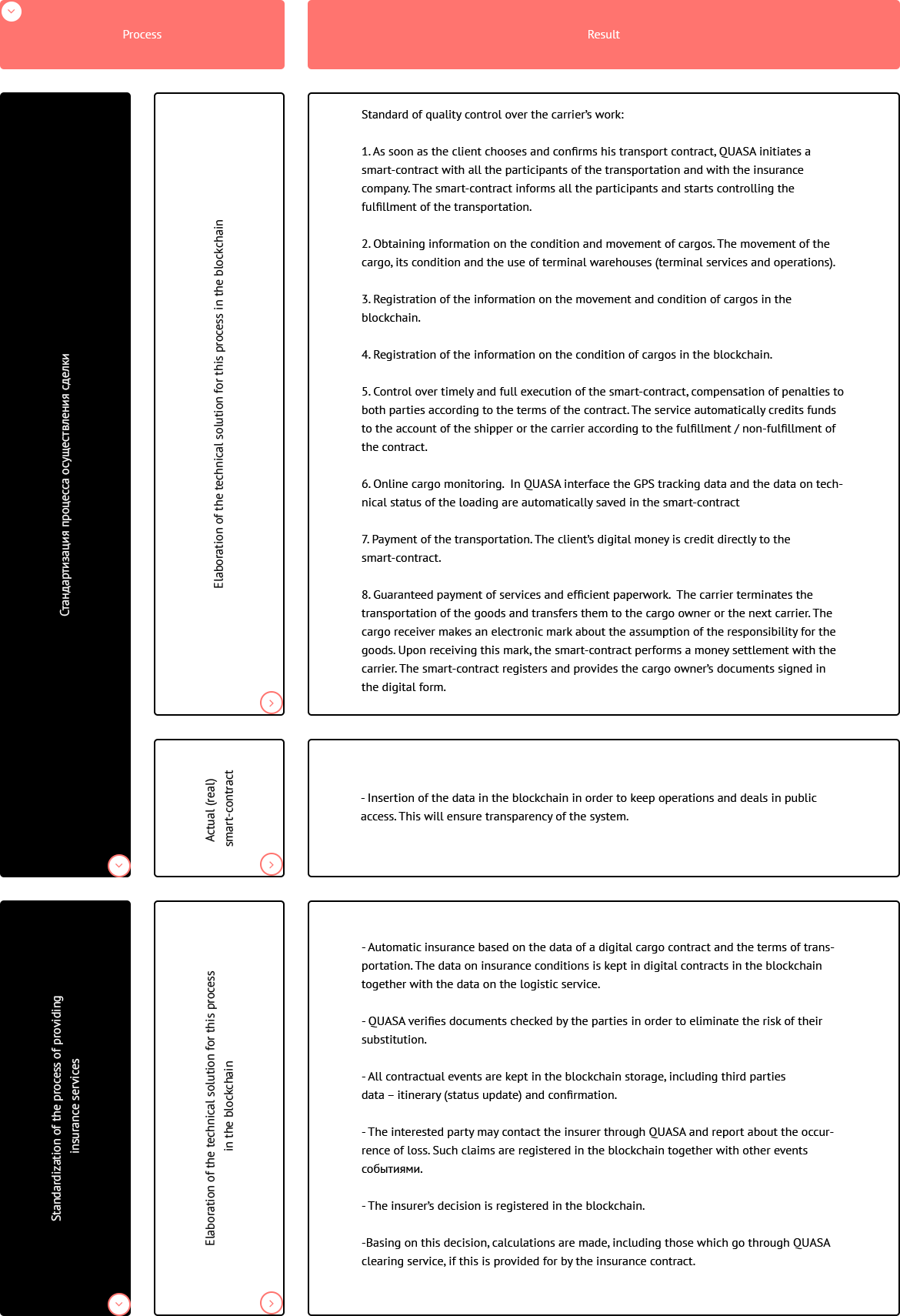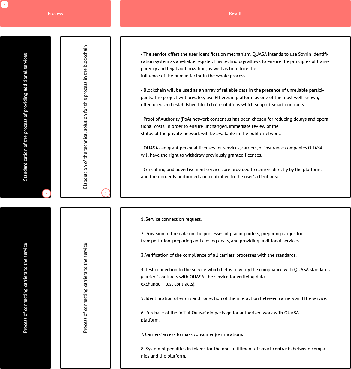 The team has already implemented and made publicly available on the Google Play Market the Quasa Connect application, which uses blockchain technology and transparent smart contracts for crypto-settlements between the participants in the transaction.